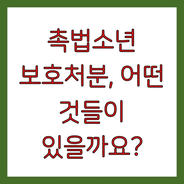 촉법소년은 형사처벌 대신 소년법에 따른 다양한 보호처분을 받게 됩니다. 보호처분은 소년의 교정 및 건전한 성장을 돕는 것을 목적으로 하며, 다음과 같은 종류가 있습니다.